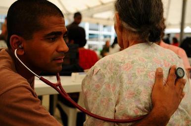 | Keywords: Medical clinic work in Couva DVIDS126504.jpg en Lt Cmdr Sugat Patel a preventive medicine doctor embarked aboard the amphibious assault ship USS Kearsarge listens to the lungs of an elderly woman during a medical clinic at the Couva District Health Facility during the Caribbean phase of the humanitarian/civic assistance mission Continuing Promise 2008 Kearsarge is the primary platform for CP 08 an equal-partnership mission involving the United States Canada the Netherlands Brazil Nicaragua Colombia Dominican Republic Trinidad and Tobago and Guyana 2008-10-30 https //www dvidshub net/image/126504 081030-N-+++++-109 2008-11-05 04 52 COUVA TT PD-USGov-Military-Navy USS Kearsarge LHD-3 Images from DoD uploaded by Fæ |