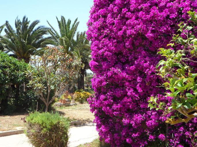 Keywords: mediterranean garden summer flora plant flower bouganville splendor bougainvillea bougainville triple flower four o'clock plant kletterpfanze bush holiday blossom bloom exotic palm trees