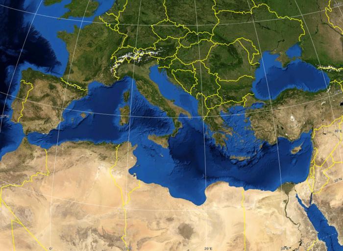 Keywords: Mediterranean Sea political map-blank.svg Blank map of the Mediterranean Sea with the State borders Carte vierge de la Mer Méditerranée avec les frontières nationales Own work ;<br/>Raster background map screenshot from NASA World Wind Public Domain 2007-06 Eric Gaba Sting - fr Sting All rights released Delian League Campaign Map png <gallery> File Mediterranian_Sea_16 61811E_38 99124N jpg Completely blank File Mediterranean_Sea_political_map-en svg English File Mediterranean_Sea_political_map-fr svg French </gallery> Atelier graphique carte PD-WorldWind fr French Wikipedia Sting Maps of the Mediterranean Sea Satellite pictures of Africa Satellite pictures of Europe Blank maps of European regions NASA World Wind |