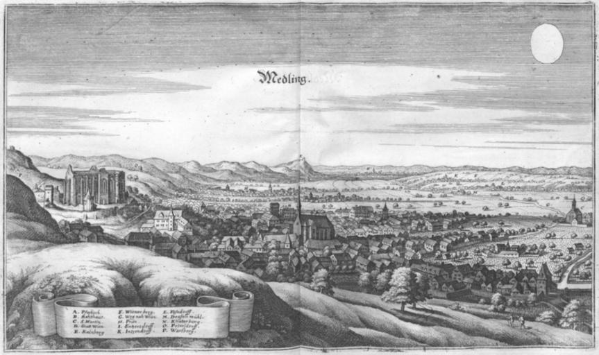 | Keywords: Medling (Merian).jpg Series title Topographia Germaniae 10 3 1679 Frankfurt am Main Digitalisat der UB Düsseldorf http //digital ub uni-duesseldorf de/content/titleinfo/189687 Topographia Austriacarum Merian 007 jpg PD-old-100-1923 Other versions s de Topographia Provinciarum Austriacarum Engravings of Topographia Austriacarum Austria in art by Matthäus Merian Mödling Engravings of Lower Austria | ||||