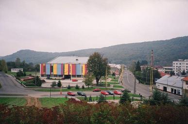 Keywords: Medzilaborce landscape Museum.jpg Town landscape with Museum of Modern Art Muzeum Moderniho Umieni in Medzilaborce Slovakia Shot by myself Oct 2005 Medzilaborce Andy Warhol Museum of Modern Art