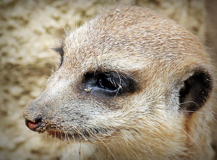 Keywords: meerkat animal nature curious small fur guard attention tiergarten cute wild animal mammal datailaufnahme watch button eyes wildlife photography sweet animal recording close light brown brown funny