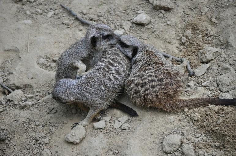 Keywords: meerkat animals zoo meercat hug three mongoose