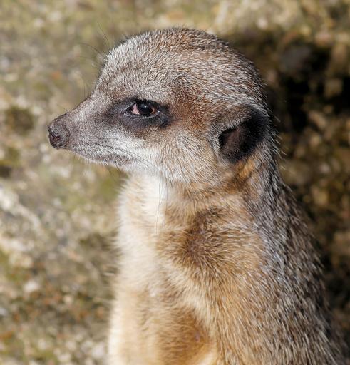 Keywords: meerkat portrait sweet close head cute attention face furry expression awakened