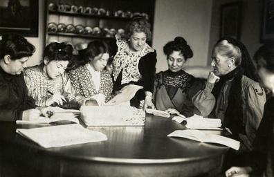 Keywords: the women's library thewomenslibrary lse library lselibrary suffrage suffragette uk wspu flora drummond floradrummond christabel pankhurst christabelpankhurst annie kenny anniekenny emmeline pankhurst emmelinepankhurst charlotte despard charlottedespard kitchen table kitchentable hires indoor monochrome 7JCC/O/02/109 Photograph, printed, paper, monochrome, Flora Drummond, Christabel Pankhurst, Annie Kenny, Emmeline Pankhurst, Charlotte Despard with two others, working round a kitchen table; printed inscription on reverse 'Barratt's Photo Press Agency, 8 Salisbury Ct, Fleet St, EC' 7JCC/O/02/109 Photograph, printed, paper, monochrome, Flora Drummond, Christabel Pankhurst, Annie Kenny, Emmeline Pankhurst, Charlotte Despard with two others, working round a kitchen table; printed inscription on reverse 'Barratt's Photo Press Agency, 8 Salisbury Ct, Fleet St, EC'