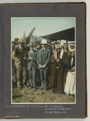 Keywords: Meetings of British, Arab, and Bedouin officials in Amman, Jordan, April 1921 - File 13.tif en Photographs show meetings between Arab Bedouin and British officials around April 17-27 1921 at Amir Abdullah ibn Hussein's camp at Amman Jordan During these meetings British High Commissioner Herbert Samuel proclaimed Amir Abdullah as the ruler of Transjordan under British protection Among the persons depicted are Amir Abdullah John D Whiting possibly Sheik Sultan of the Belka Sultan ibn 'Ali id Diab ul 'Adwan Amir Shaker bin Zeid future Regent of Transjordan Bedouin chief Auda Abu Tayi Sheik Majid Pasha el Adwan Herbert Samuel British civil administrator Wyndham Deedes British diplomat Albert Abramson T E Lawrence Lawrence of Arabia and possibly Iraq civil administrator Gertrude Bell Also shown are horse racing an airplane landing at Abdullah's camp Circassian leaders Abudullah's bodyguard on camels and Herbert Samuel reading his proclamation of Abdullah as leader of Transjordan Reproduction Number LC-DIG-ppmsca-15304 digital files of original photos LC-DIG-ppmsca-15305 digital files of album pages Rights Advisory No known restrictions on publication Access Advisory For reference access please use the digital images in the online catalog to preserve the fragile original items Notes Photographs were created by the photographers of the American Colony Photo Department located in Jerusalem Founded in the late 1890s by Elijah Meyers the photo agency was headed during its heyday ca 1903-1933 by Lewis Larsson whose staff photographers included Erik Lind Lars Lind Furman Baldwin and G Eric Matson It transitioned into the Matson Photo Service around 1940 with photography by Matson Hanna Safieh Joseph H Giries and others John D Whiting contributed periodically to the work of both agencies The images in this album were probably taken by Lewis Larsson and/or Eric Matson For more information see http //hdl loc gov/loc pnp/pp matpc and http //www loc gov/rr/print/coll/629_whiting html Some caption information for these photographs based on information from matching negatives in the G Eric and Edith Matson Photograph Collection LC-M32-1942 LC-M32-1952 LC-M32-1951 LC-M32-1954 LC-M32-1956 M32-1957 and LC-M32-50280-x Album unpaginated album page numbers supplied by Library staff Pages 1-2 and verso of each page are blank One unattached photograph was found with the album and is stored with it Photograph is a portrait of a Jordanian man in traditional dress Blind stamp Hagop Berberian Amman Stamped on verso Copyright reserved By appointment to H M the King photographers Hagop Berberian Son More information about the events and people depicted in the album are available in the John D Whiting Supplementary Archive Box 1 LOT title devised by Library staff John D Whiting's diaries correspondence and other materials are located in the Library of Congress Manuscript Division Papers of John D Whiting Forms part of Visual materials from the papers of John D Whiting Library of Congress Transfer; Manuscript Division; 2006; DLC/PP-2006 051 29 Subjects Samuel Herbert Louis Samuel --Viscount --1870-1963 Lawrence T E -- Thomas Edward --1888-1935 Abdullah --King of Jordan --1882-1951 Deedes Wyndham Henry --Sir --1883-1956 Shākir ibn Zayd --Prince son of Zayd ibn Fawwāz Amir of Ṭāʾif --1885-1934 Bell Gertrude Lowthian --1868-1926 Jordan--History--1919-1946 American Colony Jerusalem --People--1920-1930 British--Jordan--Amman--1920-1930 Arabs--Jordan--Amman--1920-1930 Bedouins--Jordan--Amman--1920-1930 Circassians--Jordan--Amman--1920-1930 Tribal chiefs--Jordan--Amman--1920-1930 Meetings--Jordan--Amman--1920-1930 Camps--Jordan--Amman--1920-1930 Government officials--Jordan--Amman--1920-1930 Biplanes--Jordan--Amman--1920-1930 Proclamations--Jordan--Amman--1920-1930 April 17-27 1921 http //www loc gov/pictures/item/mpc2010001545/PP/resource/ Whiting John D John David 1882-1951 photographer Larsson Lewis photographer Matson G Eric Gästgifvar Eric 1888-1977 photographer other versions Wikimedia Levant - GLAM PD-Jordan 1921 Herbert Samuel and Amir Abdullah meetings |