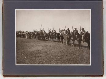 Keywords: Meetings of British, Arab, and Bedouin officials in Amman, Jordan, April 1921 - File 19.tif en Photographs show meetings between Arab Bedouin and British officials around April 17-27 1921 at Amir Abdullah ibn Hussein's camp at Amman Jordan During these meetings British High Commissioner Herbert Samuel proclaimed Amir Abdullah as the ruler of Transjordan under British protection Among the persons depicted are Amir Abdullah John D Whiting possibly Sheik Sultan of the Belka Sultan ibn 'Ali id Diab ul 'Adwan Amir Shaker bin Zeid future Regent of Transjordan Bedouin chief Auda Abu Tayi Sheik Majid Pasha el Adwan Herbert Samuel British civil administrator Wyndham Deedes British diplomat Albert Abramson T E Lawrence Lawrence of Arabia and possibly Iraq civil administrator Gertrude Bell Also shown are horse racing an airplane landing at Abdullah's camp Circassian leaders Abudullah's bodyguard on camels and Herbert Samuel reading his proclamation of Abdullah as leader of Transjordan Reproduction Number LC-DIG-ppmsca-15304 digital files of original photos LC-DIG-ppmsca-15305 digital files of album pages Rights Advisory No known restrictions on publication Access Advisory For reference access please use the digital images in the online catalog to preserve the fragile original items Notes Photographs were created by the photographers of the American Colony Photo Department located in Jerusalem Founded in the late 1890s by Elijah Meyers the photo agency was headed during its heyday ca 1903-1933 by Lewis Larsson whose staff photographers included Erik Lind Lars Lind Furman Baldwin and G Eric Matson It transitioned into the Matson Photo Service around 1940 with photography by Matson Hanna Safieh Joseph H Giries and others John D Whiting contributed periodically to the work of both agencies The images in this album were probably taken by Lewis Larsson and/or Eric Matson For more information see http //hdl loc gov/loc pnp/pp matpc and http //www loc gov/rr/print/coll/629_whiting html Some caption information for these photographs based on information from matching negatives in the G Eric and Edith Matson Photograph Collection LC-M32-1942 LC-M32-1952 LC-M32-1951 LC-M32-1954 LC-M32-1956 M32-1957 and LC-M32-50280-x Album unpaginated album page numbers supplied by Library staff Pages 1-2 and verso of each page are blank One unattached photograph was found with the album and is stored with it Photograph is a portrait of a Jordanian man in traditional dress Blind stamp Hagop Berberian Amman Stamped on verso Copyright reserved By appointment to H M the King photographers Hagop Berberian Son More information about the events and people depicted in the album are available in the John D Whiting Supplementary Archive Box 1 LOT title devised by Library staff John D Whiting's diaries correspondence and other materials are located in the Library of Congress Manuscript Division Papers of John D Whiting Forms part of Visual materials from the papers of John D Whiting Library of Congress Transfer; Manuscript Division; 2006; DLC/PP-2006 051 29 Subjects Samuel Herbert Louis Samuel --Viscount --1870-1963 Lawrence T E -- Thomas Edward --1888-1935 Abdullah --King of Jordan --1882-1951 Deedes Wyndham Henry --Sir --1883-1956 Shākir ibn Zayd --Prince son of Zayd ibn Fawwāz Amir of Ṭāʾif --1885-1934 Bell Gertrude Lowthian --1868-1926 Jordan--History--1919-1946 American Colony Jerusalem --People--1920-1930 British--Jordan--Amman--1920-1930 Arabs--Jordan--Amman--1920-1930 Bedouins--Jordan--Amman--1920-1930 Circassians--Jordan--Amman--1920-1930 Tribal chiefs--Jordan--Amman--1920-1930 Meetings--Jordan--Amman--1920-1930 Camps--Jordan--Amman--1920-1930 Government officials--Jordan--Amman--1920-1930 Biplanes--Jordan--Amman--1920-1930 Proclamations--Jordan--Amman--1920-1930 April 17-27 1921 http //www loc gov/pictures/item/mpc2010001545/PP/resource/ Whiting John D John David 1882-1951 photographer Larsson Lewis photographer Matson G Eric Gästgifvar Eric 1888-1977 photographer other versions Wikimedia Levant - GLAM PD-Jordan 1921 Herbert Samuel and Amir Abdullah meetings |