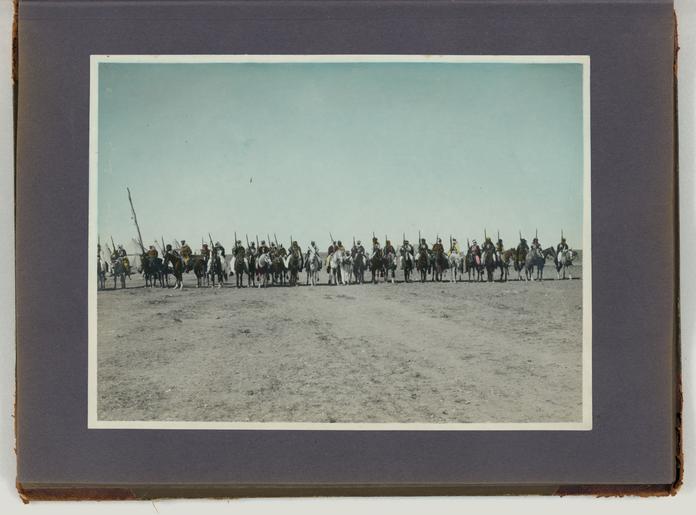| Keywords: Meetings of British, Arab, and Bedouin officials in Amman, Jordan, April 1921 - File 20.tif en Photographs show meetings between Arab Bedouin and British officials around April 17-27 1921 at Amir Abdullah ibn Hussein's camp at Amman Jordan During these meetings British High Commissioner Herbert Samuel proclaimed Amir Abdullah as the ruler of Transjordan under British protection Among the persons depicted are Amir Abdullah John D Whiting possibly Sheik Sultan of the Belka Sultan ibn 'Ali id Diab ul 'Adwan Amir Shaker bin Zeid future Regent of Transjordan Bedouin chief Auda Abu Tayi Sheik Majid Pasha el Adwan Herbert Samuel British civil administrator Wyndham Deedes British diplomat Albert Abramson T E Lawrence Lawrence of Arabia and possibly Iraq civil administrator Gertrude Bell Also shown are horse racing an airplane landing at Abdullah's camp Circassian leaders Abudullah's bodyguard on camels and Herbert Samuel reading his proclamation of Abdullah as leader of Transjordan Reproduction Number LC-DIG-ppmsca-15304 digital files of original photos LC-DIG-ppmsca-15305 digital files of album pages Rights Advisory No known restrictions on publication Access Advisory For reference access please use the digital images in the online catalog to preserve the fragile original items Notes Photographs were created by the photographers of the American Colony Photo Department located in Jerusalem Founded in the late 1890s by Elijah Meyers the photo agency was headed during its heyday ca 1903-1933 by Lewis Larsson whose staff photographers included Erik Lind Lars Lind Furman Baldwin and G Eric Matson It transitioned into the Matson Photo Service around 1940 with photography by Matson Hanna Safieh Joseph H Giries and others John D Whiting contributed periodically to the work of both agencies The images in this album were probably taken by Lewis Larsson and/or Eric Matson For more information see http //hdl loc gov/loc pnp/pp matpc and http //www loc gov/rr/print/coll/629_whiting html Some caption information for these photographs based on information from matching negatives in the G Eric and Edith Matson Photograph Collection LC-M32-1942 LC-M32-1952 LC-M32-1951 LC-M32-1954 LC-M32-1956 M32-1957 and LC-M32-50280-x Album unpaginated album page numbers supplied by Library staff Pages 1-2 and verso of each page are blank One unattached photograph was found with the album and is stored with it Photograph is a portrait of a Jordanian man in traditional dress Blind stamp Hagop Berberian Amman Stamped on verso Copyright reserved By appointment to H M the King photographers Hagop Berberian Son More information about the events and people depicted in the album are available in the John D Whiting Supplementary Archive Box 1 LOT title devised by Library staff John D Whiting's diaries correspondence and other materials are located in the Library of Congress Manuscript Division Papers of John D Whiting Forms part of Visual materials from the papers of John D Whiting Library of Congress Transfer; Manuscript Division; 2006; DLC/PP-2006 051 29 Subjects Samuel Herbert Louis Samuel --Viscount --1870-1963 Lawrence T E -- Thomas Edward --1888-1935 Abdullah --King of Jordan --1882-1951 Deedes Wyndham Henry --Sir --1883-1956 Shākir ibn Zayd --Prince son of Zayd ibn Fawwāz Amir of Ṭāʾif --1885-1934 Bell Gertrude Lowthian --1868-1926 Jordan--History--1919-1946 American Colony Jerusalem --People--1920-1930 British--Jordan--Amman--1920-1930 Arabs--Jordan--Amman--1920-1930 Bedouins--Jordan--Amman--1920-1930 Circassians--Jordan--Amman--1920-1930 Tribal chiefs--Jordan--Amman--1920-1930 Meetings--Jordan--Amman--1920-1930 Camps--Jordan--Amman--1920-1930 Government officials--Jordan--Amman--1920-1930 Biplanes--Jordan--Amman--1920-1930 Proclamations--Jordan--Amman--1920-1930 April 17-27 1921 http //www loc gov/pictures/item/mpc2010001545/PP/resource/ Whiting John D John David 1882-1951 photographer Larsson Lewis photographer Matson G Eric Gästgifvar Eric 1888-1977 photographer other versions Wikimedia Levant - GLAM PD-Jordan 1921 Herbert Samuel and Amir Abdullah meetings |