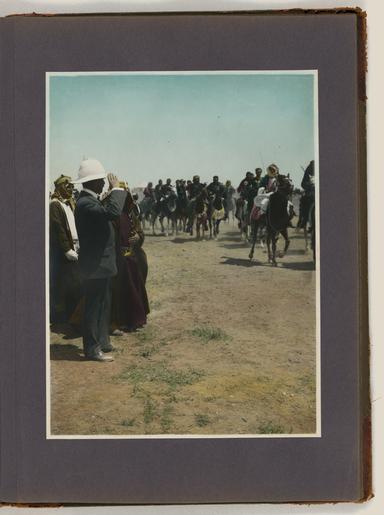 Keywords: Meetings of British, Arab, and Bedouin officials in Amman, Jordan, April 1921 - File 25.tif en Photographs show meetings between Arab Bedouin and British officials around April 17-27 1921 at Amir Abdullah ibn Hussein's camp at Amman Jordan During these meetings British High Commissioner Herbert Samuel proclaimed Amir Abdullah as the ruler of Transjordan under British protection Among the persons depicted are Amir Abdullah John D Whiting possibly Sheik Sultan of the Belka Sultan ibn 'Ali id Diab ul 'Adwan Amir Shaker bin Zeid future Regent of Transjordan Bedouin chief Auda Abu Tayi Sheik Majid Pasha el Adwan Herbert Samuel British civil administrator Wyndham Deedes British diplomat Albert Abramson T E Lawrence Lawrence of Arabia and possibly Iraq civil administrator Gertrude Bell Also shown are horse racing an airplane landing at Abdullah's camp Circassian leaders Abudullah's bodyguard on camels and Herbert Samuel reading his proclamation of Abdullah as leader of Transjordan Reproduction Number LC-DIG-ppmsca-15304 digital files of original photos LC-DIG-ppmsca-15305 digital files of album pages Rights Advisory No known restrictions on publication Access Advisory For reference access please use the digital images in the online catalog to preserve the fragile original items Notes Photographs were created by the photographers of the American Colony Photo Department located in Jerusalem Founded in the late 1890s by Elijah Meyers the photo agency was headed during its heyday ca 1903-1933 by Lewis Larsson whose staff photographers included Erik Lind Lars Lind Furman Baldwin and G Eric Matson It transitioned into the Matson Photo Service around 1940 with photography by Matson Hanna Safieh Joseph H Giries and others John D Whiting contributed periodically to the work of both agencies The images in this album were probably taken by Lewis Larsson and/or Eric Matson For more information see http //hdl loc gov/loc pnp/pp matpc and http //www loc gov/rr/print/coll/629_whiting html Some caption information for these photographs based on information from matching negatives in the G Eric and Edith Matson Photograph Collection LC-M32-1942 LC-M32-1952 LC-M32-1951 LC-M32-1954 LC-M32-1956 M32-1957 and LC-M32-50280-x Album unpaginated album page numbers supplied by Library staff Pages 1-2 and verso of each page are blank One unattached photograph was found with the album and is stored with it Photograph is a portrait of a Jordanian man in traditional dress Blind stamp Hagop Berberian Amman Stamped on verso Copyright reserved By appointment to H M the King photographers Hagop Berberian Son More information about the events and people depicted in the album are available in the John D Whiting Supplementary Archive Box 1 LOT title devised by Library staff John D Whiting's diaries correspondence and other materials are located in the Library of Congress Manuscript Division Papers of John D Whiting Forms part of Visual materials from the papers of John D Whiting Library of Congress Transfer; Manuscript Division; 2006; DLC/PP-2006 051 29 Subjects Samuel Herbert Louis Samuel --Viscount --1870-1963 Lawrence T E -- Thomas Edward --1888-1935 Abdullah --King of Jordan --1882-1951 Deedes Wyndham Henry --Sir --1883-1956 Shākir ibn Zayd --Prince son of Zayd ibn Fawwāz Amir of Ṭāʾif --1885-1934 Bell Gertrude Lowthian --1868-1926 Jordan--History--1919-1946 American Colony Jerusalem --People--1920-1930 British--Jordan--Amman--1920-1930 Arabs--Jordan--Amman--1920-1930 Bedouins--Jordan--Amman--1920-1930 Circassians--Jordan--Amman--1920-1930 Tribal chiefs--Jordan--Amman--1920-1930 Meetings--Jordan--Amman--1920-1930 Camps--Jordan--Amman--1920-1930 Government officials--Jordan--Amman--1920-1930 Biplanes--Jordan--Amman--1920-1930 Proclamations--Jordan--Amman--1920-1930 April 17-27 1921 http //www loc gov/pictures/item/mpc2010001545/PP/resource/ Whiting John D John David 1882-1951 photographer Larsson Lewis photographer Matson G Eric Gästgifvar Eric 1888-1977 photographer other versions Wikimedia Levant - GLAM PD-Jordan 1921 Herbert Samuel and Amir Abdullah meetings |