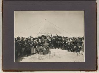 Keywords: Meetings of British, Arab, and Bedouin officials in Amman, Jordan, April 1921 - File 28.tif en Photographs show meetings between Arab Bedouin and British officials around April 17-27 1921 at Amir Abdullah ibn Hussein's camp at Amman Jordan During these meetings British High Commissioner Herbert Samuel proclaimed Amir Abdullah as the ruler of Transjordan under British protection Among the persons depicted are Amir Abdullah John D Whiting possibly Sheik Sultan of the Belka Sultan ibn 'Ali id Diab ul 'Adwan Amir Shaker bin Zeid future Regent of Transjordan Bedouin chief Auda Abu Tayi Sheik Majid Pasha el Adwan Herbert Samuel British civil administrator Wyndham Deedes British diplomat Albert Abramson T E Lawrence Lawrence of Arabia and possibly Iraq civil administrator Gertrude Bell Also shown are horse racing an airplane landing at Abdullah's camp Circassian leaders Abudullah's bodyguard on camels and Herbert Samuel reading his proclamation of Abdullah as leader of Transjordan Reproduction Number LC-DIG-ppmsca-15304 digital files of original photos LC-DIG-ppmsca-15305 digital files of album pages Rights Advisory No known restrictions on publication Access Advisory For reference access please use the digital images in the online catalog to preserve the fragile original items Notes Photographs were created by the photographers of the American Colony Photo Department located in Jerusalem Founded in the late 1890s by Elijah Meyers the photo agency was headed during its heyday ca 1903-1933 by Lewis Larsson whose staff photographers included Erik Lind Lars Lind Furman Baldwin and G Eric Matson It transitioned into the Matson Photo Service around 1940 with photography by Matson Hanna Safieh Joseph H Giries and others John D Whiting contributed periodically to the work of both agencies The images in this album were probably taken by Lewis Larsson and/or Eric Matson For more information see http //hdl loc gov/loc pnp/pp matpc and http //www loc gov/rr/print/coll/629_whiting html Some caption information for these photographs based on information from matching negatives in the G Eric and Edith Matson Photograph Collection LC-M32-1942 LC-M32-1952 LC-M32-1951 LC-M32-1954 LC-M32-1956 M32-1957 and LC-M32-50280-x Album unpaginated album page numbers supplied by Library staff Pages 1-2 and verso of each page are blank One unattached photograph was found with the album and is stored with it Photograph is a portrait of a Jordanian man in traditional dress Blind stamp Hagop Berberian Amman Stamped on verso Copyright reserved By appointment to H M the King photographers Hagop Berberian Son More information about the events and people depicted in the album are available in the John D Whiting Supplementary Archive Box 1 LOT title devised by Library staff John D Whiting's diaries correspondence and other materials are located in the Library of Congress Manuscript Division Papers of John D Whiting Forms part of Visual materials from the papers of John D Whiting Library of Congress Transfer; Manuscript Division; 2006; DLC/PP-2006 051 29 Subjects Samuel Herbert Louis Samuel --Viscount --1870-1963 Lawrence T E -- Thomas Edward --1888-1935 Abdullah --King of Jordan --1882-1951 Deedes Wyndham Henry --Sir --1883-1956 Shākir ibn Zayd --Prince son of Zayd ibn Fawwāz Amir of Ṭāʾif --1885-1934 Bell Gertrude Lowthian --1868-1926 Jordan--History--1919-1946 American Colony Jerusalem --People--1920-1930 British--Jordan--Amman--1920-1930 Arabs--Jordan--Amman--1920-1930 Bedouins--Jordan--Amman--1920-1930 Circassians--Jordan--Amman--1920-1930 Tribal chiefs--Jordan--Amman--1920-1930 Meetings--Jordan--Amman--1920-1930 Camps--Jordan--Amman--1920-1930 Government officials--Jordan--Amman--1920-1930 Biplanes--Jordan--Amman--1920-1930 Proclamations--Jordan--Amman--1920-1930 April 17-27 1921 http //www loc gov/pictures/item/mpc2010001545/PP/resource/ Whiting John D John David 1882-1951 photographer Larsson Lewis photographer Matson G Eric Gästgifvar Eric 1888-1977 photographer other versions Wikimedia Levant - GLAM PD-Jordan 1921 Herbert Samuel and Amir Abdullah meetings |
