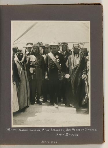 Keywords: Meetings of British, Arab, and Bedouin officials in Amman, Jordan, April 1921 - File 05.tif en Photographs show meetings between Arab Bedouin and British officials around April 17-27 1921 at Amir Abdullah ibn Hussein's camp at Amman Jordan During these meetings British High Commissioner Herbert Samuel proclaimed Amir Abdullah as the ruler of Transjordan under British protection Among the persons depicted are Amir Abdullah John D Whiting possibly Sheik Sultan of the Belka Sultan ibn 'Ali id Diab ul 'Adwan Amir Shaker bin Zeid future Regent of Transjordan Bedouin chief Auda Abu Tayi Sheik Majid Pasha el Adwan Herbert Samuel British civil administrator Wyndham Deedes British diplomat Albert Abramson T E Lawrence Lawrence of Arabia and possibly Iraq civil administrator Gertrude Bell Also shown are horse racing an airplane landing at Abdullah's camp Circassian leaders Abudullah's bodyguard on camels and Herbert Samuel reading his proclamation of Abdullah as leader of Transjordan Reproduction Number LC-DIG-ppmsca-15304 digital files of original photos LC-DIG-ppmsca-15305 digital files of album pages Rights Advisory No known restrictions on publication Access Advisory For reference access please use the digital images in the online catalog to preserve the fragile original items Notes Photographs were created by the photographers of the American Colony Photo Department located in Jerusalem Founded in the late 1890s by Elijah Meyers the photo agency was headed during its heyday ca 1903-1933 by Lewis Larsson whose staff photographers included Erik Lind Lars Lind Furman Baldwin and G Eric Matson It transitioned into the Matson Photo Service around 1940 with photography by Matson Hanna Safieh Joseph H Giries and others John D Whiting contributed periodically to the work of both agencies The images in this album were probably taken by Lewis Larsson and/or Eric Matson For more information see http //hdl loc gov/loc pnp/pp matpc and http //www loc gov/rr/print/coll/629_whiting html Some caption information for these photographs based on information from matching negatives in the G Eric and Edith Matson Photograph Collection LC-M32-1942 LC-M32-1952 LC-M32-1951 LC-M32-1954 LC-M32-1956 M32-1957 and LC-M32-50280-x Album unpaginated album page numbers supplied by Library staff Pages 1-2 and verso of each page are blank One unattached photograph was found with the album and is stored with it Photograph is a portrait of a Jordanian man in traditional dress Blind stamp Hagop Berberian Amman Stamped on verso Copyright reserved By appointment to H M the King photographers Hagop Berberian Son More information about the events and people depicted in the album are available in the John D Whiting Supplementary Archive Box 1 LOT title devised by Library staff John D Whiting's diaries correspondence and other materials are located in the Library of Congress Manuscript Division Papers of John D Whiting Forms part of Visual materials from the papers of John D Whiting Library of Congress Transfer; Manuscript Division; 2006; DLC/PP-2006 051 29 Subjects Samuel Herbert Louis Samuel --Viscount --1870-1963 Lawrence T E -- Thomas Edward --1888-1935 Abdullah --King of Jordan --1882-1951 Deedes Wyndham Henry --Sir --1883-1956 Shākir ibn Zayd --Prince son of Zayd ibn Fawwāz Amir of Ṭāʾif --1885-1934 Bell Gertrude Lowthian --1868-1926 Jordan--History--1919-1946 American Colony Jerusalem --People--1920-1930 British--Jordan--Amman--1920-1930 Arabs--Jordan--Amman--1920-1930 Bedouins--Jordan--Amman--1920-1930 Circassians--Jordan--Amman--1920-1930 Tribal chiefs--Jordan--Amman--1920-1930 Meetings--Jordan--Amman--1920-1930 Camps--Jordan--Amman--1920-1930 Government officials--Jordan--Amman--1920-1930 Biplanes--Jordan--Amman--1920-1930 Proclamations--Jordan--Amman--1920-1930 April 17-27 1921 http //www loc gov/pictures/item/mpc2010001545/PP/resource/ Whiting John D John David 1882-1951 photographer Larsson Lewis photographer Matson G Eric Gästgifvar Eric 1888-1977 photographer other versions Wikimedia Levant - GLAM PD-Jordan 1921 Herbert Samuel and Amir Abdullah meetings |