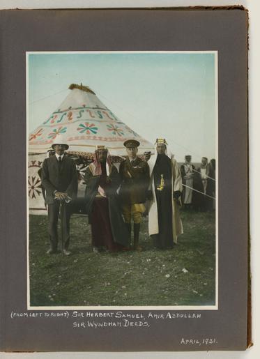 Keywords: Meetings of British, Arab, and Bedouin officials in Amman, Jordan, April 1921 - File 06.tif en Photographs show meetings between Arab Bedouin and British officials around April 17-27 1921 at Amir Abdullah ibn Hussein's camp at Amman Jordan During these meetings British High Commissioner Herbert Samuel proclaimed Amir Abdullah as the ruler of Transjordan under British protection Among the persons depicted are Amir Abdullah John D Whiting possibly Sheik Sultan of the Belka Sultan ibn 'Ali id Diab ul 'Adwan Amir Shaker bin Zeid future Regent of Transjordan Bedouin chief Auda Abu Tayi Sheik Majid Pasha el Adwan Herbert Samuel British civil administrator Wyndham Deedes British diplomat Albert Abramson T E Lawrence Lawrence of Arabia and possibly Iraq civil administrator Gertrude Bell Also shown are horse racing an airplane landing at Abdullah's camp Circassian leaders Abudullah's bodyguard on camels and Herbert Samuel reading his proclamation of Abdullah as leader of Transjordan Reproduction Number LC-DIG-ppmsca-15304 digital files of original photos LC-DIG-ppmsca-15305 digital files of album pages Rights Advisory No known restrictions on publication Access Advisory For reference access please use the digital images in the online catalog to preserve the fragile original items Notes Photographs were created by the photographers of the American Colony Photo Department located in Jerusalem Founded in the late 1890s by Elijah Meyers the photo agency was headed during its heyday ca 1903-1933 by Lewis Larsson whose staff photographers included Erik Lind Lars Lind Furman Baldwin and G Eric Matson It transitioned into the Matson Photo Service around 1940 with photography by Matson Hanna Safieh Joseph H Giries and others John D Whiting contributed periodically to the work of both agencies The images in this album were probably taken by Lewis Larsson and/or Eric Matson For more information see http //hdl loc gov/loc pnp/pp matpc and http //www loc gov/rr/print/coll/629_whiting html Some caption information for these photographs based on information from matching negatives in the G Eric and Edith Matson Photograph Collection LC-M32-1942 LC-M32-1952 LC-M32-1951 LC-M32-1954 LC-M32-1956 M32-1957 and LC-M32-50280-x Album unpaginated album page numbers supplied by Library staff Pages 1-2 and verso of each page are blank One unattached photograph was found with the album and is stored with it Photograph is a portrait of a Jordanian man in traditional dress Blind stamp Hagop Berberian Amman Stamped on verso Copyright reserved By appointment to H M the King photographers Hagop Berberian Son More information about the events and people depicted in the album are available in the John D Whiting Supplementary Archive Box 1 LOT title devised by Library staff John D Whiting's diaries correspondence and other materials are located in the Library of Congress Manuscript Division Papers of John D Whiting Forms part of Visual materials from the papers of John D Whiting Library of Congress Transfer; Manuscript Division; 2006; DLC/PP-2006 051 29 Subjects Samuel Herbert Louis Samuel --Viscount --1870-1963 Lawrence T E -- Thomas Edward --1888-1935 Abdullah --King of Jordan --1882-1951 Deedes Wyndham Henry --Sir --1883-1956 Shākir ibn Zayd --Prince son of Zayd ibn Fawwāz Amir of Ṭāʾif --1885-1934 Bell Gertrude Lowthian --1868-1926 Jordan--History--1919-1946 American Colony Jerusalem --People--1920-1930 British--Jordan--Amman--1920-1930 Arabs--Jordan--Amman--1920-1930 Bedouins--Jordan--Amman--1920-1930 Circassians--Jordan--Amman--1920-1930 Tribal chiefs--Jordan--Amman--1920-1930 Meetings--Jordan--Amman--1920-1930 Camps--Jordan--Amman--1920-1930 Government officials--Jordan--Amman--1920-1930 Biplanes--Jordan--Amman--1920-1930 Proclamations--Jordan--Amman--1920-1930 April 17-27 1921 http //www loc gov/pictures/item/mpc2010001545/PP/resource/ Whiting John D John David 1882-1951 photographer Larsson Lewis photographer Matson G Eric Gästgifvar Eric 1888-1977 photographer other versions Wikimedia Levant - GLAM PD-Jordan 1921 Herbert Samuel and Amir Abdullah meetings |