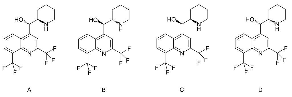 Keywords: Mefloquine stereochemistry.svg en stereochemistry of mefloquine de Stereochemie vom Mefloquin own Steffen 962 2014-02-23 PD-chem Mefloquine Cc-zero