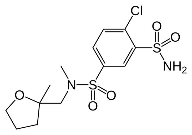 Keywords: Mefruside skeletal.svg validSVG Skeletal formula of mefruside Orientation made to match Image Furosemide svg Created using http //www acdlabs com/download/chemsk html ACD/ChemSketch 10 0 http //www inkscape org Inkscape and http //www vim org vim Own Fvasconcellos 2008-06-28 Mefruside |