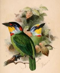 Keywords: Megalaima faber & Megalaima nuchalis 1870.jpg <br /> « Megalaema faber » Megalaima faber Chinese Barbet « Megalaema nuchalis » Megalaima nuchalis Taiwan Barbet <br /> « Megalaema faber » Megalaima faber Barbu forgeron « Megalaema nuchalis » Megalaima nuchalis Barbu de Formose http //archive org/stream/ibis61870brit page/n611/mode/2up The Ibis ser 2 vol 6 creator John Gerrard Keulemans 1870 File Megalaima_faber_1870 jpg PD-old-100 Megalaima faber Megalaima nuchalis Ibis 1870 |