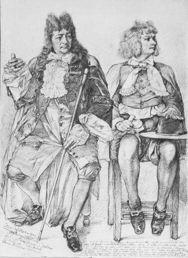 Keywords: Mein 11b Der eingebildete Kranke.jpg en Scene from The Imaginary Invalid Dr Diafoirus and his son Thomas Hoftheater Meiningen Germany de Szene aus Der eingebildete Kranke Dr Diafoirus Otto Godeck und sein Sohn Thomas Carl Görner Hoftheater Meiningen Buch Die Meininger Creator Christian Wilhelm Allers 1890 Die Meininger Allers Le Malade imaginaire PD-old |