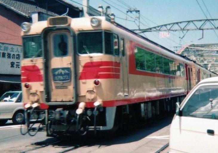 Keywords: Meitetsu-DC-8000.jpg Nagoya Railroad DMU type Kiha-8000 At Inuyama-Yuen Sta Inuyama Bridge Photo by Cassiopeia_sweet ca 1990 Cassiopeia_sweet 1990 in rail transport in Japan Meitetsu 8000 series Kita-Alps train