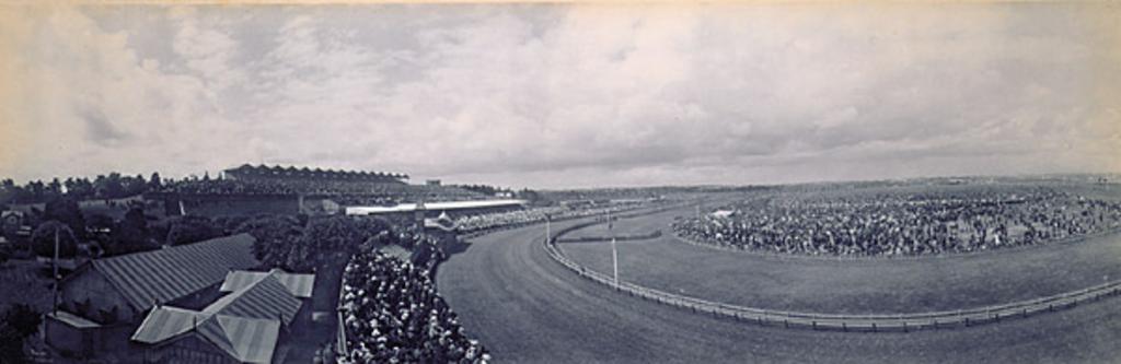 Keywords: melvin vaniman melvin vaniman melvinvaniman photography panorama flemington melbourne cup melbournecup 1903 crowd horse racing state library statelibrary state library of new south wales statelibraryofnewsouthwales Three-year-old Sydney stayer Lord Cardigan surprisingly won Australia's premier horse race and was politely applauded by the locals. The Daily Telegraph 4 November 1903 described the large turnout: … the crowd was in excess of any crowd that has been seen in Flemington for many years. Every part of the ground — the lawn, the flat, the hill, the grandstand — seemed to be a mass of heads and faces. Find more information about the Melvin Vaniman collection of photographic panoramas in the State Library of New South Wales' catalogue: acms.sl.nsw.gov.au/item/itemdetailpaged.aspx?itemid=413018 Three-year-old Sydney stayer Lord Cardigan surprisingly won Australia's premier horse race and was politely applauded by the locals. The Daily Telegraph 4 November 1903 described the large turnout: … the crowd was in excess of any crowd that has been seen in Flemington for many years. Every part of the ground — the lawn, the flat, the hill, the grandstand — seemed to be a mass of heads and faces. Find more information about the Melvin Vaniman collection of photographic panoramas in the State Library of New South Wales' catalogue: acms.sl.nsw.gov.au/item/itemdetailpaged.aspx?itemid=413018 |
