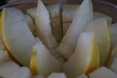 Keywords: melon cantaloupe sliced yellow eat fruit dessert delicious healthy food buffet arranged shell carve