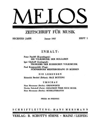 Keywords: Melos 1927 Titel.png Titelseite der Zeitschrift / Title page of the periodical Eigenscan 1927 Diverse PD-old PD-ineligible Magazines in German Melos Zeitschrift