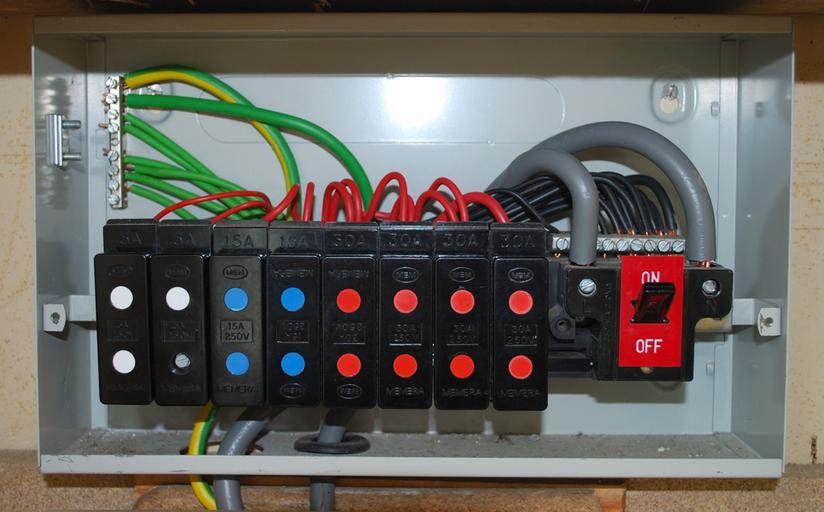 Keywords: Mem 1977 cu open.jpg en A UK consumer unit fuse box for rewirable fuse holders installed c 1976 manufactured by MEM Shown open Own Anihl 2008-10-14 Fuse boxes Rewirable fuses