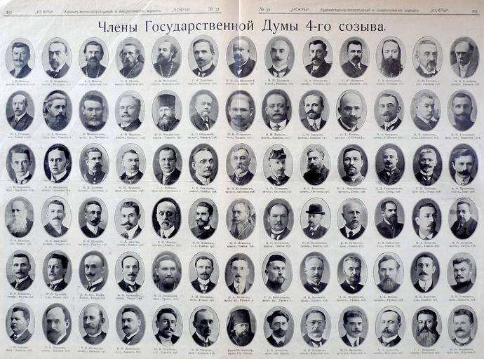 | Keywords: Members of State Duma IV.jpg ru Члены Госуда ственной Думы Российской импе ии 4-го созыва 1913 Иллюст и ованный жу нал Иск ы 32 1913 URL http //history-foto livejournal com/331799 html cutid1 author Custom license marker 2014 08 25 PD-RusEmpire Uploaded with UploadWizard Members of State Duma of the Russian Empire of the fourth convocation |