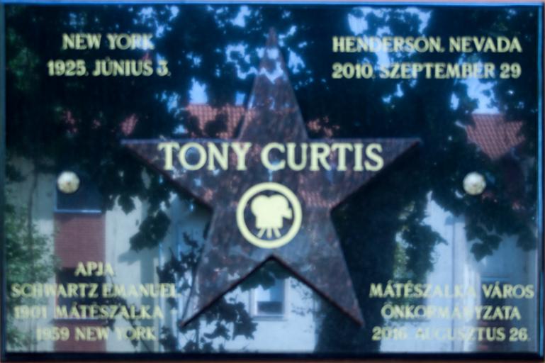 Keywords: Memorial plaque of Tony Curtis in Mátészalka.jpg Memorial plaque of Tony Curtis on the wall of the Synagogue in Mátészalka Tony Curtis emléktáblája a mátészalkai zsinagóga falán own photo ; Photo by Szilas in Mátészalka Szilas Commonist FoP-Hungary Synagogue Mátészalka Plaques in Mátészalka Tony Curtis low quality |