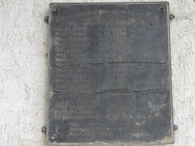 View Original: | Memorial plaque victims WW1 Marktgölitz.JPG (4896x3672) | |||