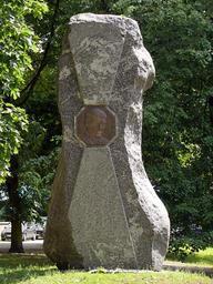 Keywords: Memorial stone of Ernests Brastiņš, founder of Dievturity, in Riga, Latvia v2.png lv wikipedia http //lv wikipedia org/wiki/Att C4 93ls Ernests_Brastins_1 JPG Ernest Brastins' 1892nd-1942nd monument in Riga Kronvald Park beside the congress hall at the city's canal Sculptor Uldis Sterģis in collaboration with the stonecutter Robertu Zvagūzis and medal artist Jāni Strupuli The monument is about 20 tons and four and a half meters high The moulded medal shows Brastins' portrait on the other side there is an inscription which says Tautai Folk Dievam God Tēvijai Fatherland Photo A Buks 12 06 2009 Ernesta Brastiņa 1892 -1942 piemineklis Rīgā Kronvalda parkā līdzās Kongresu namam pie pilsētas kanāla Atklāts 2006 gada oktobrī pēc Brastiņa fonda Savieši iniciatīvas Autori tēlnieks Uldis Sterģis medaļu meistars Jānis Strupulis un arhitekts Teodors Nigulis sadarbībā ar akmeņkali Robertu Zvagūzi Piemineklis veidots no 20 t smaga 4 5 metru augsta tīrradņa šļūdoņa akmens uz kura varā atliets Brastiņa portrets otrā pusē iekalti vārdi Tautai Dievam Tēvijai 2009 Made and uploaded by Anonīms Anonīms other versions Dievturity Neopaganism |