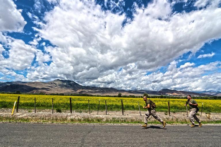 Keywords: men running escape escaping army race marines landscape training climb inspiration nature blue wind summer speed sky