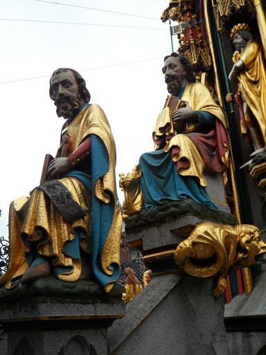 Keywords: men sit sitting sculpture statues statue religious christian christianity beautiful fountain fountain gold gilded golden nuremberg