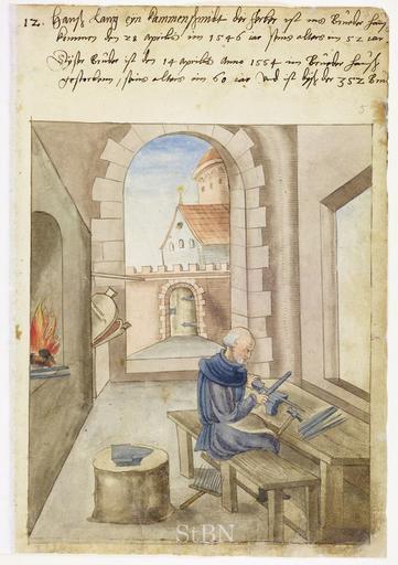 | Keywords: Mendel II 005 r.jpg Hanß Hans Lang Kammenschmidt der Ferber Kammschmied Transkription und weitere Informationen siehe http //www nuernberger-hausbuecher de/75-Amb-2-317b-5-r/data Hausbuch der Mendelschen Zwölfbrüderstiftung Band 2 Nürnberg 1550 “1791 Stadtbibliothek Nürnberg Amb 317b 2° via http //www nuernberger-hausbuecher de/ 1554 anonymous PD-old-100 Hausbuch der Mendelschen Zwölfbrüderstiftung Band 2 Combmakers in art Smiths in art | ||||