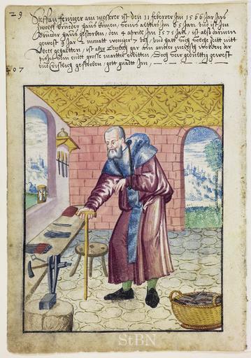 | Keywords: Mendel II 032 v.jpg Steffan Stefan; Stephan Fenitzer messerer Messerschmied; Messerer Transkription und weitere Informationen siehe http //www nuernberger-hausbuecher de/75-Amb-2-317b-32-v/data Hausbuch der Mendelschen Zwölfbrüderstiftung Band 2 Nürnberg 1550 “1791 Stadtbibliothek Nürnberg Amb 317b 2° via http //www nuernberger-hausbuecher de/ 1575 anonymous PD-old-100 Hausbuch der Mendelschen Zwölfbrüderstiftung Band 2 Bladesmiths in art People with canes in art | ||||