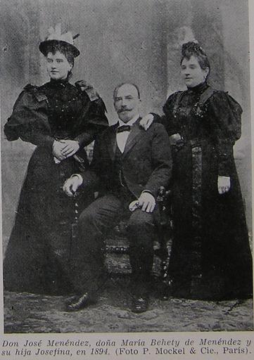 | Keywords: Menéndez,su esposa y su hija en su 2º. viaje a Europa. París.JPG es José Menéndez su esposa María Behety y su hija Josefina Menéndez-Behety fotografiados en París en 1894 durante su segundo viaje a Europa revista Argentina Austral Mockel Cíe 1894 PD-AR-Photo José Menéndez Menéndez People in Paris |