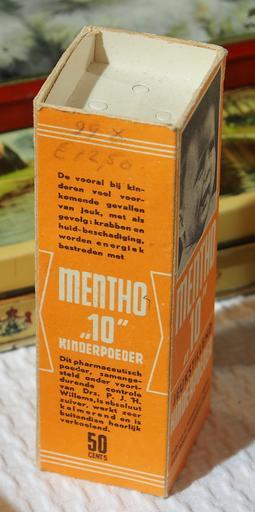 Keywords: Mentho 10 kinderpoeder pic2.JPG Old product that is not sold/produced anymore own 2013-11-03 14 29 26 Alf van Beem CC-zero Trademarked Talcum powder Nostalgia by Alf van Beem
