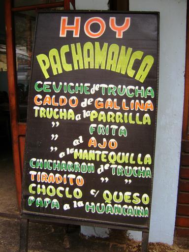 Keywords: Menu Recreo Las Brisas 2.JPG es Menu del Recreo Las Brisas Ingenio Región Junín Perú own Dtarazona 2008-11 Food menus Restaurant signs in Peru Rectangular signs vertically Wooden signs Spanish language signs Andean Spanish