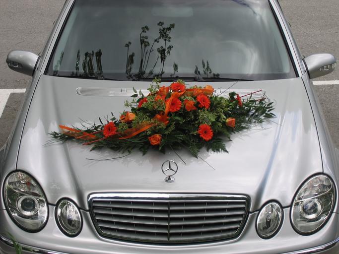 Keywords: mercedes flowers floral arrangement wedding bridal car roses limousine before marry marriage