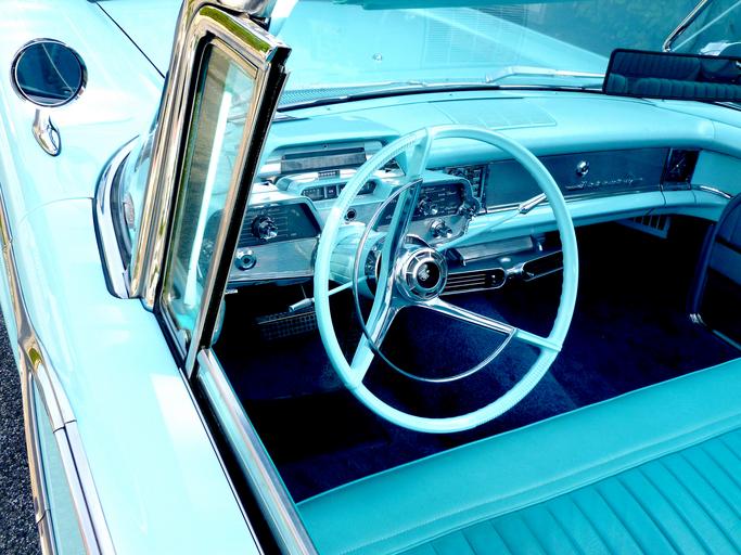 Keywords: mercury auto classic oldtimer vehicle rarity retro vintage nostalgia spotlight bumper old car white wall tires historically tail fins v8 chrome plated american pkw american car cars convertible usa chrome gloss automotive dashboard interior steering wheel instrument panel control windshield speedo autoradio speedometer blue valve