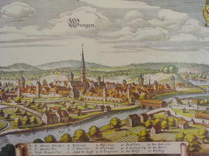 Keywords: Merian Wangen im Allgäu colorized.jpg Matthäus Merian d Ä Wangen im Allgäu; Topograhia Sueviae 1643 Collection Kreisarchiv Ravensburg Sb11-Nr 29 Graphiksammlung via http //www archive-bw de/sixcms/list php page seite_archivzimelien sv 5Bid 5D 10205 _seite Archivalienschau archive-bw de 1643 Matthäus Merian der Ältere Public Domain thumb none Creator Matthäus Merian PD-old-100 History of Wangen im Allgäu Engravings by Matthäus Merian Hand-colored photographs |