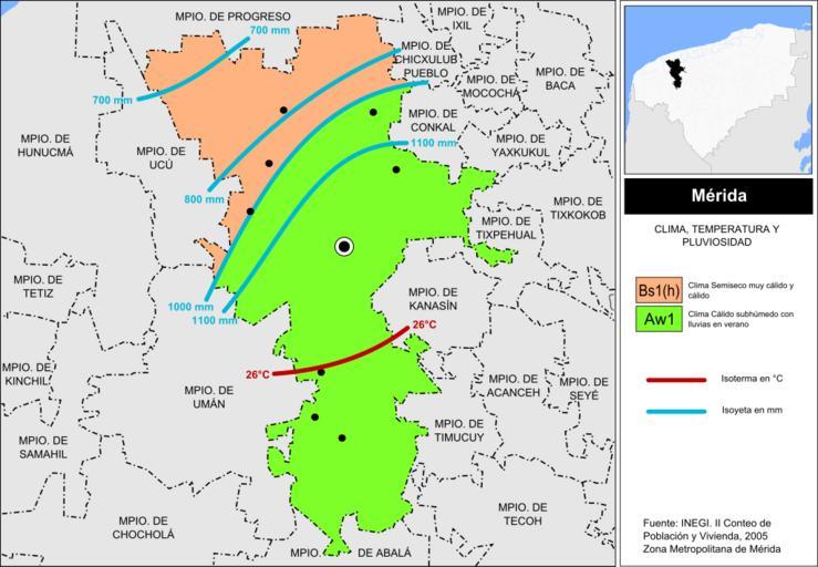Keywords: Merida climas.svg Mapa de climas pluviosidad y temperatura del municipio de Mérida Yucatán México own Inkscape 2010-01-17 Battroid Maps of Yucatán