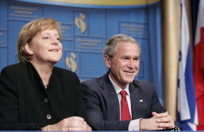 Keywords: Merkel-bush-may-2006.jpg President George W Bush shares a moment with Chancellor Angela Merkel during the American Jewish Committee's Centennial Dinner Thursday May 4 2006 at the National Building Museum in Washington D C White House http //www whitehouse gov/news/releases/2006/05/images/20060504-15_p050406pm-0398-515h html 2006-05-04 White House photo by Paul Morse US GOV PD Angela Merkel jpg PD-USGov George W Bush and Angela Merkel Bush05 George W Bush in 2006 20060504 Angela Merkel in 2006 20060504 Judaism in the United States Photographs by Paul Morse National Building Museum |