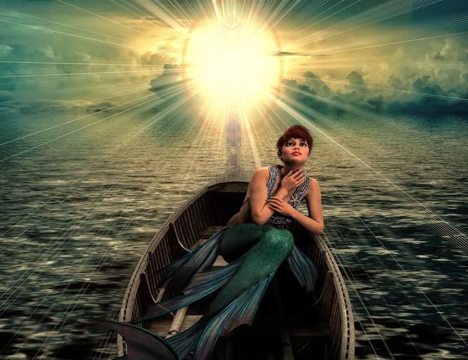 Keywords: mermaid fantasy sunlight ocean sea fairytale water fantasy woman magic female legend tail fishtail mythical boat tale legendary creature mythology