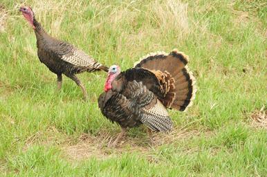 Keywords: Merriams turkey - Meleagris gallopavo merriami.jpg Merriam's turkey Meleagris gallopavo merriami tom displays his mating plumage to a Merriam's turkey hen at the Sand Lake National Wildlife Refuge Sand Lake National Wildlife Refuge in South Dakota in the United States http //www flickr com/photos/usfwsmtnprairie/12803607154 U S Fish and Wildlife Service 2012-04-18 Meleagris gallopavo merriami PD-USGov |