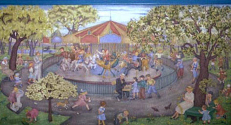 | Keywords: Merry go round by Ethel Spears.jpg en Merry Go Round an oil on canvas mural by Ethel Spears done in 1939 1939-01-02 http //www wpamurals com/rochelle htm Ethel Spears other versions PD-USGov Ethel Spears Rochelle Illinois 1939 paintings WPA murals |