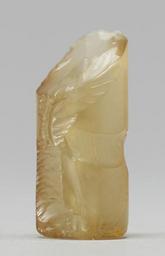 Keywords: Mesopotamian - Cylinder Seal with Human Headed Winged Bull and Inscription - Walters 42808 - Side E.jpg This scene on this seal depicts a human headed winged lion wearing a horned crown with an inverted crescent in the field above him The scene also incorporates a cuneiform inscription in three registers late 2nd millenium BC Neo-Babylonain ; Assyrian yellow transparent stone cm 2 4 0 9 accession number 42 808 4549 Sadie Jones Mrs Henry Walters New York date and mode of acquisition unknown Sale Joseph Brummer New York 1941 Walters Art Museum 1941 by purchase Museum purchase 1941 Inscription place of origin Mesopotamia Walters Art Museum license Cylinder seals in the Walters Art Museum Art of Mesopotamia in the Walters Art Museum Lions in art of the ancient Near East Cuneiform on cylinder seals Cuneiform on media Griffin cylinder seal Walters 42808 Walters Art Museum cylinder seals with cuneiform Animals in art of the ancient Near East An cuneiform Pa cuneiform Media contributed by the Walters Art Museum needs category review |