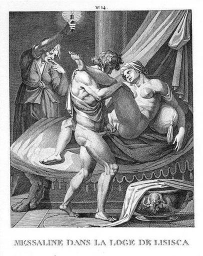 Keywords: MessalineLisisca.jpg Nominally Messalina serving as a prostitute under the pseudonym of Lisisca literally 'Messalina in Lisisica's booth' deriving from accounts such as this one of Juvenal's Then look at those who rival the Gods and hear what Claudius endured As soon as his wife perceived that her husband was asleep this august harlot was shameless enough to prefer a common mat to the imperial couch Assuming night-cowl and attended by a single maid she issued forth; then having concealed her raven locks under a light-coloured peruque she took her place in a brothel reeking with long-used coverlets Entering an empty cell reserved for herself she there took her stand under the feigned name of Lycisca her nipples bare and gilded and exposed to view the womb that bore thee O nobly-born Britannicus Here she graciously received all comers asking from each his fee; and when at length the keeper dismissed his girls she remained to the very last before closing her cell and with passion still raging hot within her went sorrowfully away Then exhausted by men but unsatisfied with soiled cheeks and begrimed with the smoke of lamps she took back to the imperial pillow all the odours of the stews Creator Agostino Carracci PD-old-100 Erotic art of Agostino Carracci Standing sex positions Messalina Prostitution in art Artworks missing infobox template |