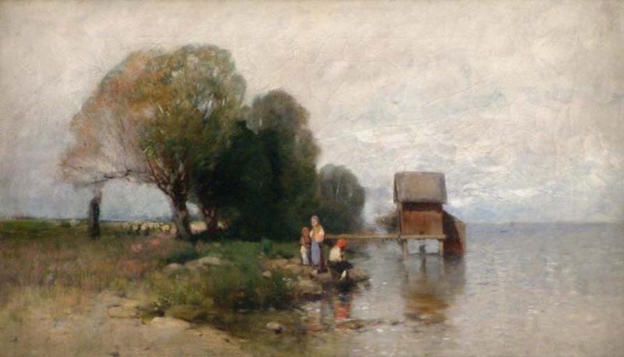 | Keywords: Mészöly Bath-house at lake Balaton c. 1885.jpg Artwork Creator Géza Mészöly ~ 1885 Oil on canvas Size cm 59 33 Institution Herman Ottó Museum accession number P 77 275 object history credit line http //kepzomuvesz hermuz hu/ Válogatás a Herman Ottó Múzeum Képzőművészeti Gyűjteményéből http //kepzomuvesz hermuz hu/adatlap/eng_P 77 275 html Info http //kepzomuvesz hermuz hu/kepek/800/P 77 275 jpg Pic PD-old-100 Paintings by Géza Mészöly in the Herman Ottó Museum 1885 paintings in Hungary Balaton in art Lake houses |