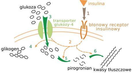 MAKE A MEME View Large Image Metabolizm insulina.svg pl Efekt wywierany przez insulinę na poziom stężenia glukozy w organizmie Insulina łączy się z receptorem 1 rozpoczynającym kolejno wiele serii reakcji aktywacji białek 2 Image Insulin glucose metabolism ZP ...