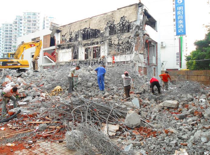 | Keywords: Metal rebar reclamation for recycling at building demolition site - 02.jpg en Workers extracting rebar and other metal from concrete rubble at building demolition site Haikou City Hainan Province China 2012-04-27 own Anna Frodesiak cc-zero Uploaded with UploadWizard Rebar Files by User Anna Frodesiak Building demolition Rubble |