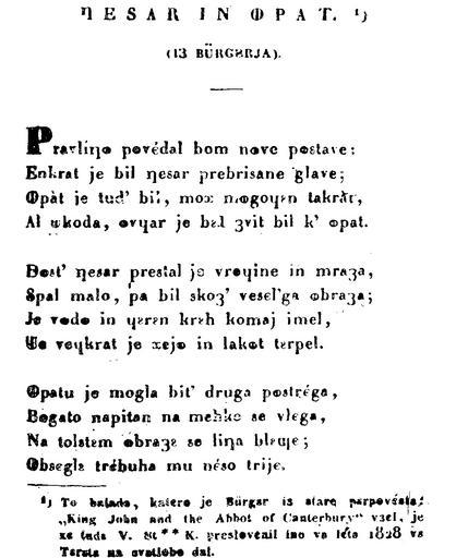 Keywords: Metelcica valentin stanic 1828 cesar in opat.jpg Fragment of Cesar in opat metelčica Zgodovina slovenskega slovstva II Lino Legiša 1828 Valentin Stanič assessments 1 PD-old-100 Poems in Slovene 1828 works in Slovenia Metelčica Valentin Stanič |